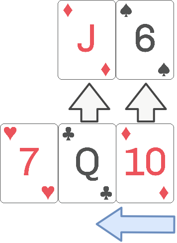 - Du må ha lik verdi eller høyere på kortene fra rekken din for å trekke inn kortene du har valgt